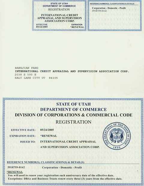 (注:我们犹它州公司已注销和停止一切活动,注册证书仅证明我们的成立历史)
